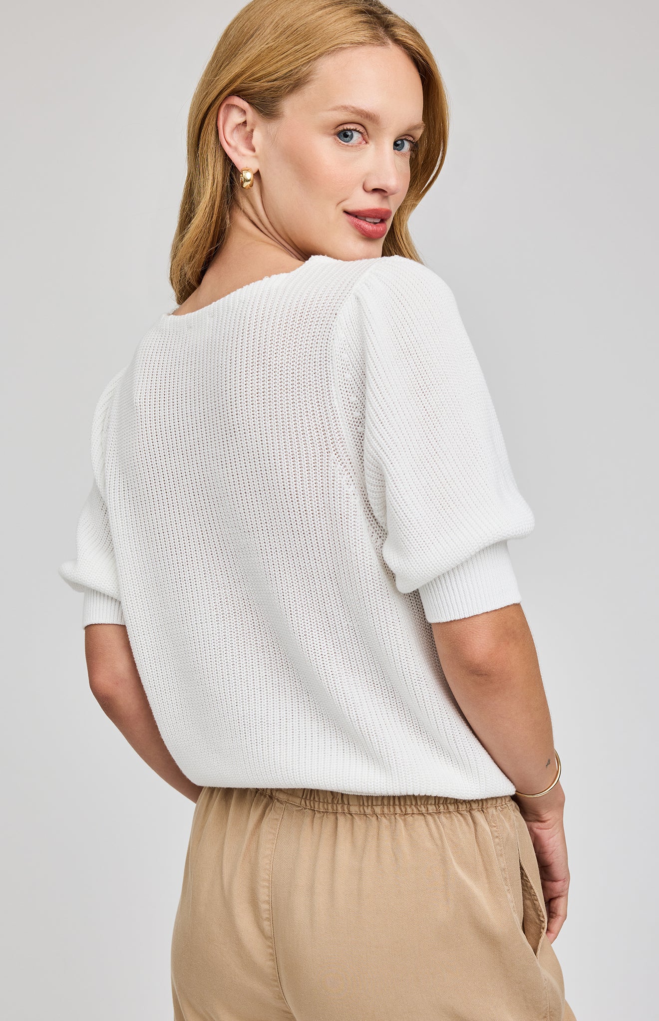 Made of a super soft yarn, the Phoebe sweater features a v-neckline and puff sleeves. It’s effortlessly feminine and perfect for everyday wear.